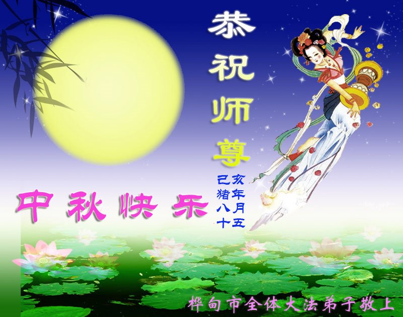 祝恩师中秋快乐! 月圆盼师尊 月缺想师尊 无月念师尊 做好三件事 回报无量恩 大陆吉林市大法弟子母子恭祝师尊中秋快乐!