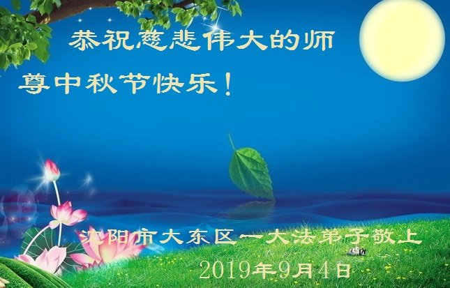 辽宁沈阳于洪区一学法小组全体学员恭祝慈悲伟大的师尊中秋节快乐!感谢师尊慈悲救度!祝愿师尊多一份欣慰,少一份操劳。我们一定会做好三件事,跟师尊回家。 辽宁沈阳市一大法弟子恭祝师尊中秋快乐!