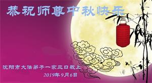 辽宁沈阳市一大法弟子及家人恭祝慈悲伟大的师尊中秋节快乐!