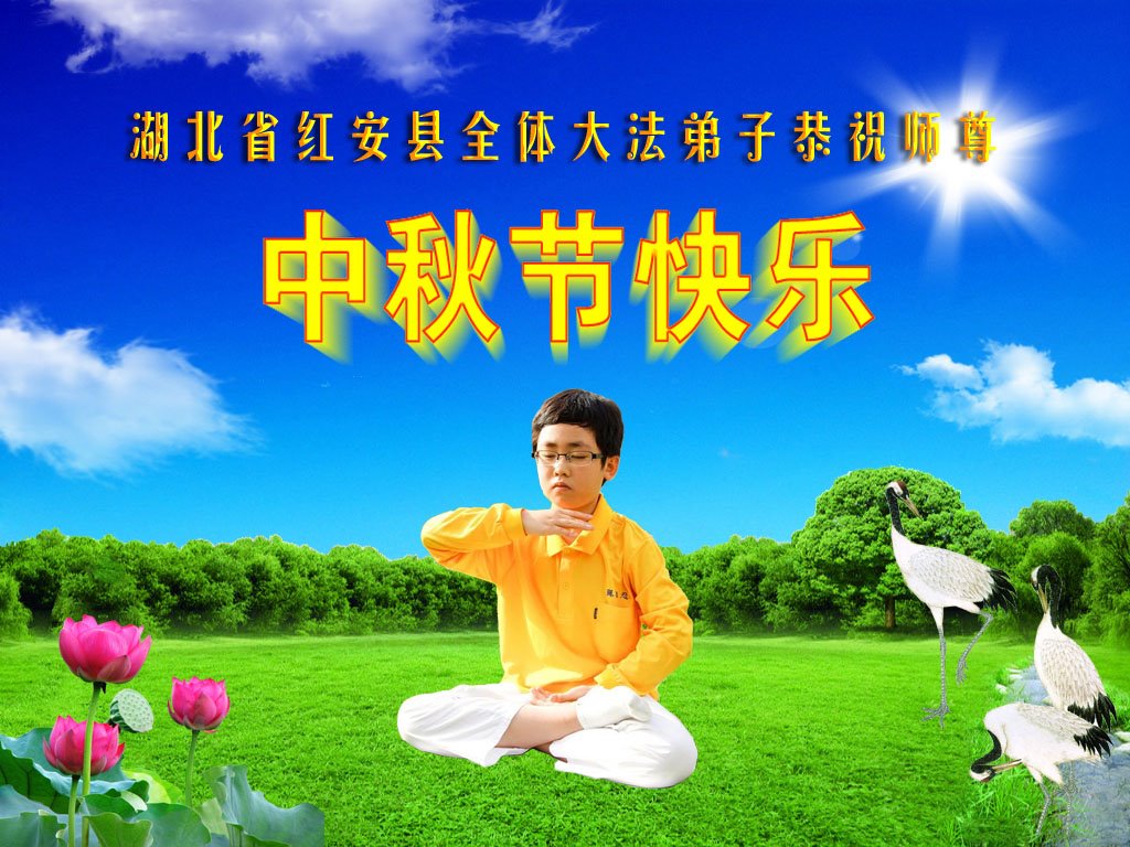 湖北省黄冈市红安县全体大法弟子恭祝师尊中秋节快乐!