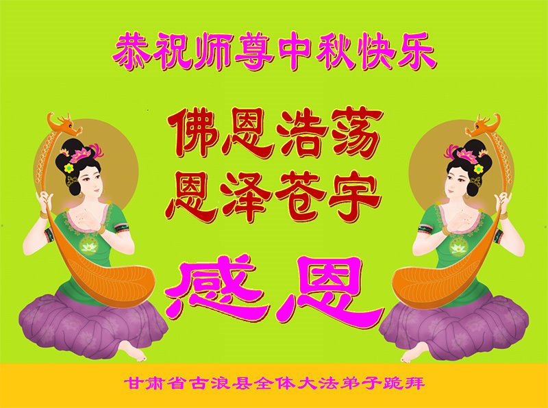 师尊您好!师尊您辛苦了!您浩大洪恩满苍宇!弟子叩谢师尊的再造之恩! 甘肃省兰州市、陕西省西安市姐妹两家大法弟子恭祝师尊中秋节快乐!