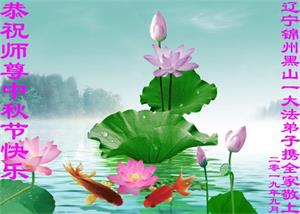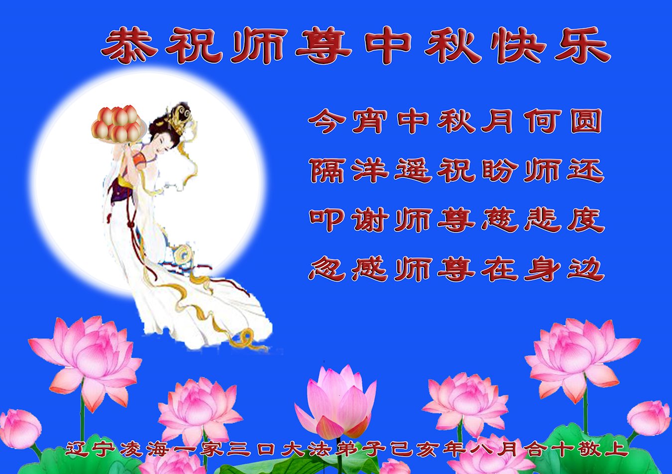 辽宁省锦州市凌海市一家三口大法弟子恭祝师尊中秋快乐!