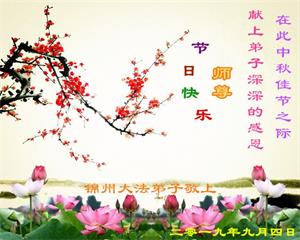 恭祝师尊中秋节快乐! 辽宁省锦州市大法弟子敬上 二零一九年八月二十九日 辽宁省锦州市全体大法弟子恭祝师尊中秋节快乐!