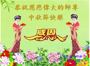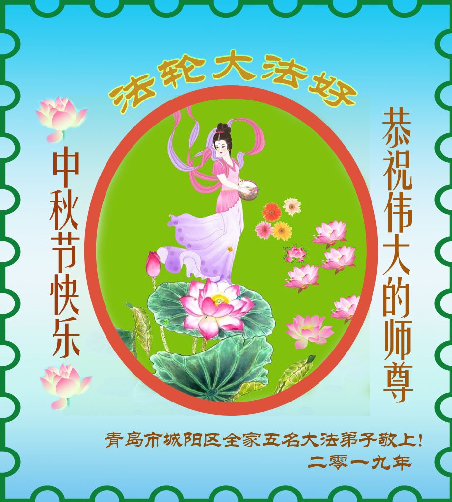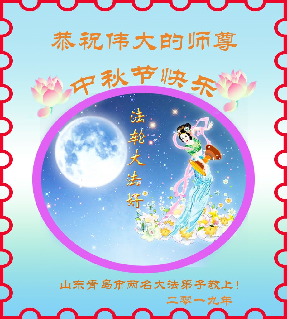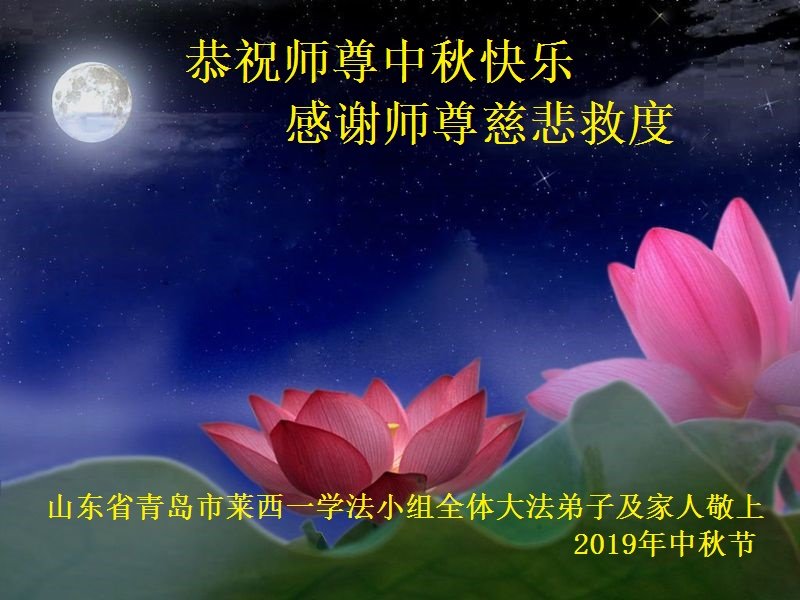 【明慧网二零一九年九月十一日】 山东青岛市两名大法弟子恭祝伟大的师尊中秋节快乐!