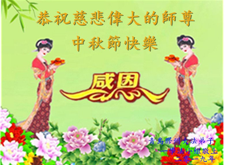 山东青岛一学法小组大法弟子恭祝师尊中秋节快乐!
