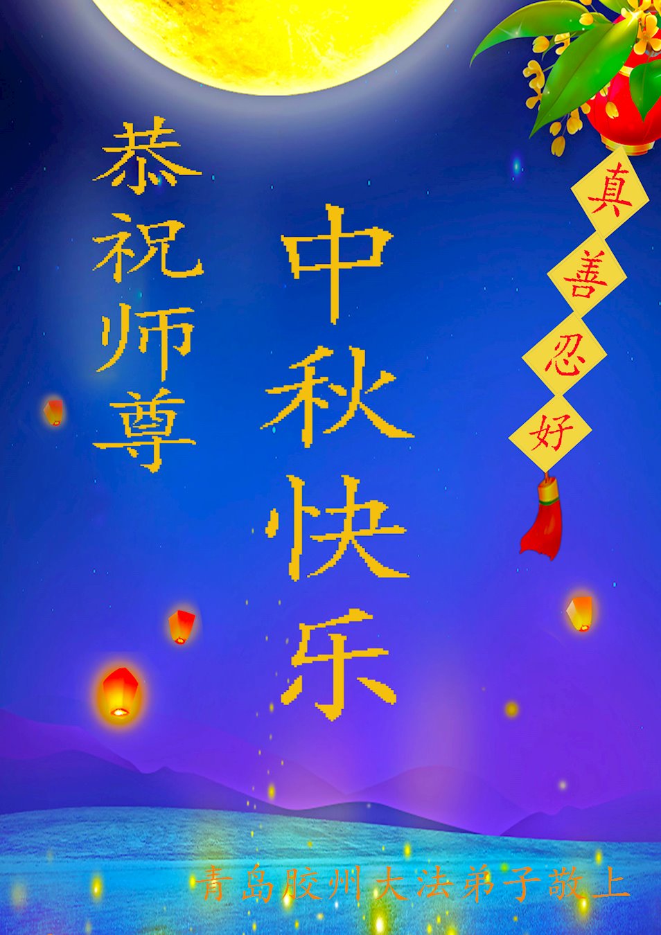师恩浩荡旷古今 精進实修去人心 邪恶狂飙气数尽 抓紧救度分秒金 山东省青岛市胶州大法弟子恭祝师尊中秋快乐!