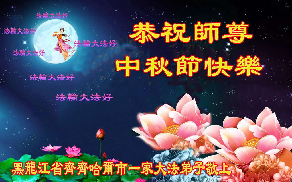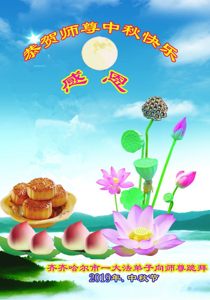 【明慧网二零一九年九月十一日】 黑龙江省齐齐哈尔一大法弟子恭祝师尊中秋节快乐!