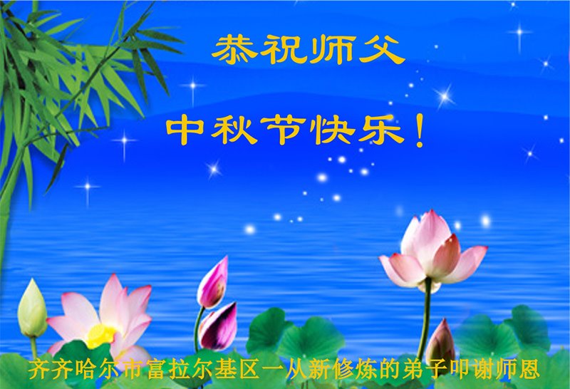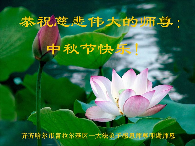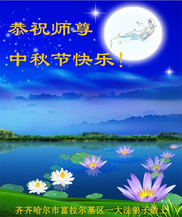 今年中秋又来到,感谢师尊选我当大法弟子。感谢师尊慈悲苦度,感谢师尊带我回家。祝师尊中秋快乐! 黑龙江省齐齐哈尔市富拉尔基区大法弟子恭祝师尊中秋快乐!