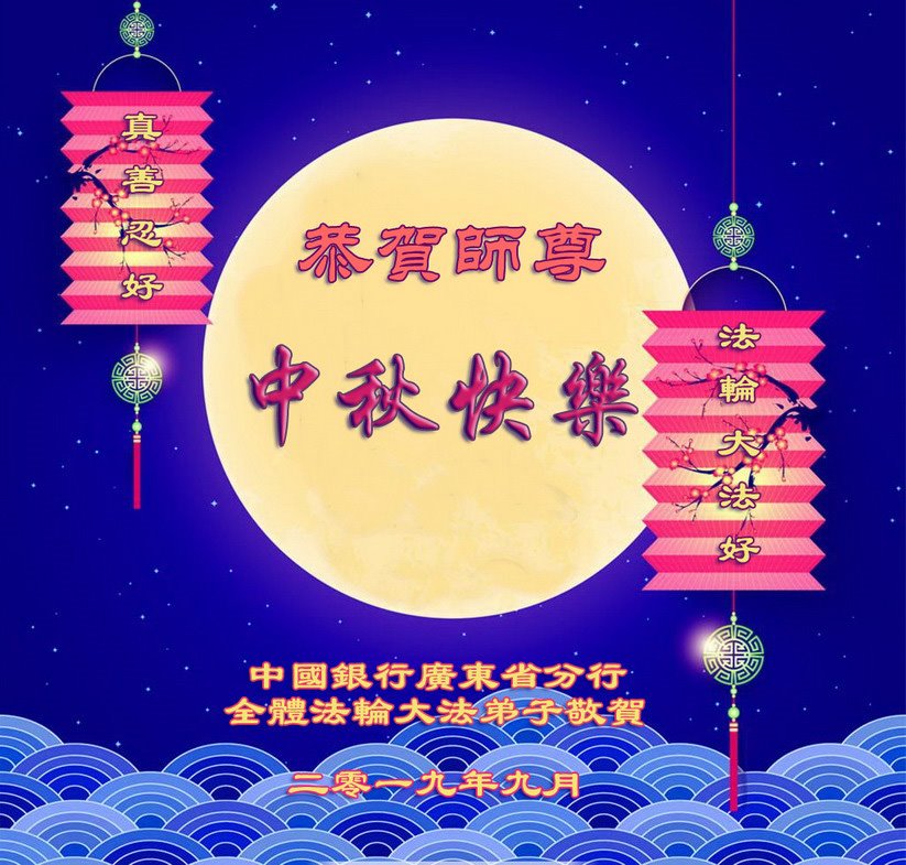 恭祝师尊中秋快乐! 黑龙江省七台河市医务界大法弟子敬上 2019年9月6日 中国银行广东省分行全体法轮大法弟子恭祝师尊中秋快乐!