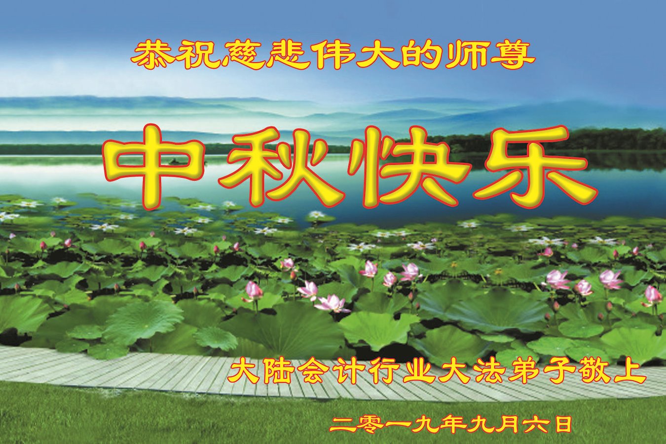 【明慧网二零一九年九月十一日】 安徽省阜阳市临泉县建设系统大法弟子恭祝师尊中秋快乐!