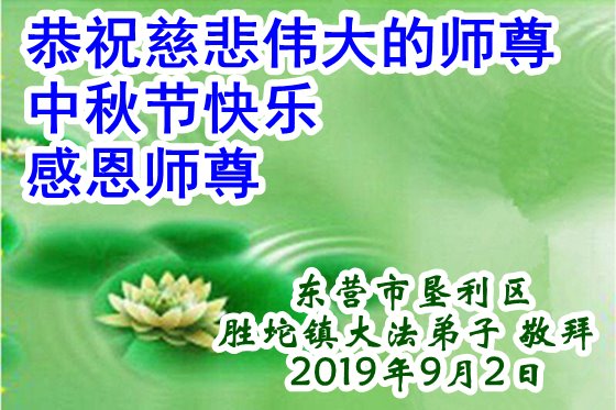 【明慧网二零一九年九月十一日】 中国大陆山东省聊城市冠县一学法小组大法弟子恭祝师尊中秋快乐!