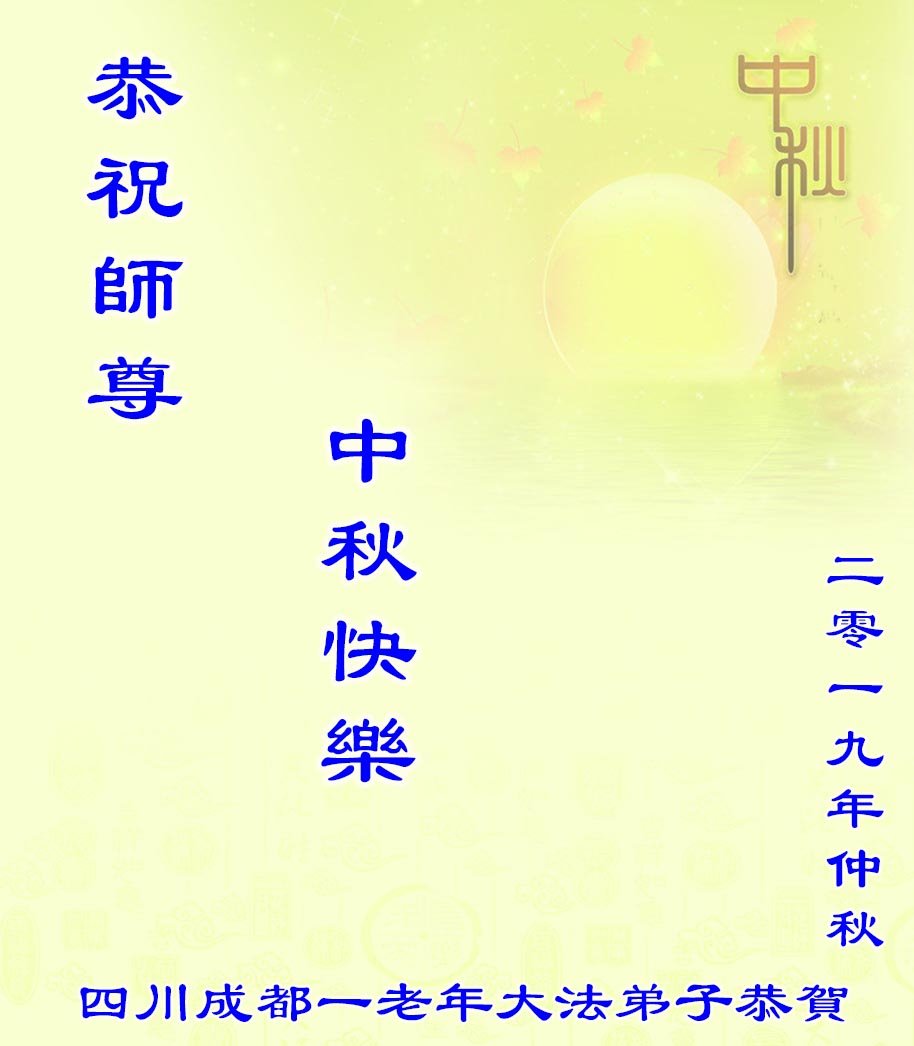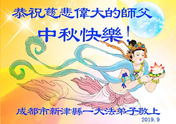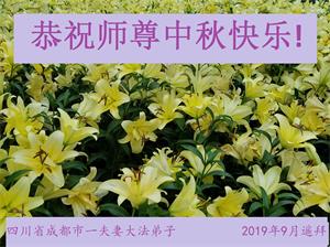 【明慧网二零一九年九月十一日】 四川省成都一大法弟子恭祝师尊中秋节快乐!
