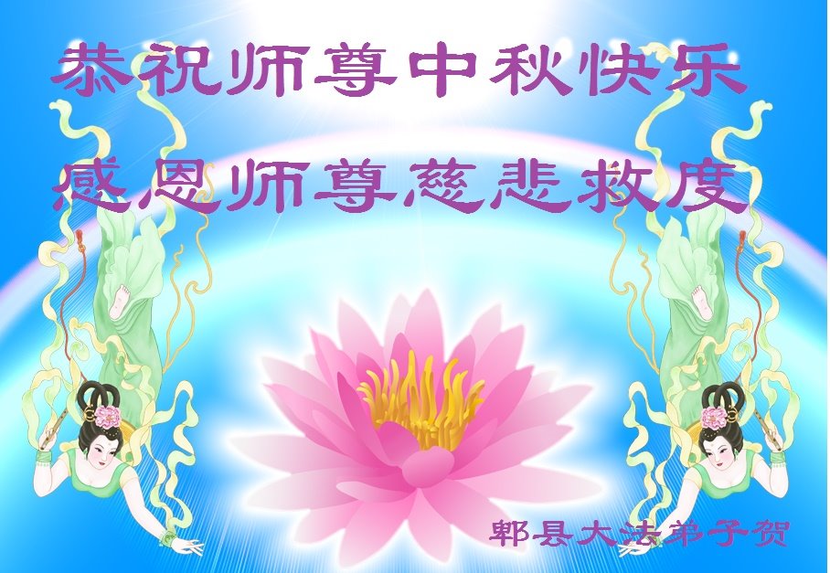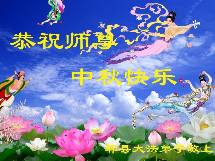 恭祝慈悲伟大的师尊中秋快乐! 谢谢您对弟子们所做的一切,请师尊放心,弟子们一定谨记师尊教诲,放下人心,踏踏实实的修好自己,救度可救度的众生,完成自己的历史使命。 四川省成都市彭州市一小镇全体大法弟子敬上, 弟子叩拜师父! 四川省成都市犀浦大法弟子恭祝师尊中秋节快乐!