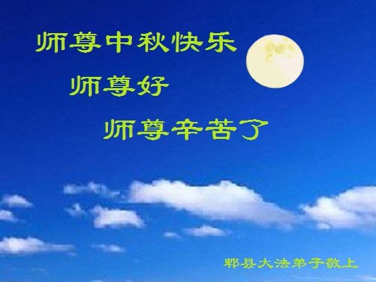 在这月圆的时刻,弟子恭祝师尊中秋快乐! 感恩师尊慈悲苦度!弟子恭盼师尊早日回到神州,和弟子大团圆! 四川省成都市郫县大法弟子恭祝师尊中秋节快乐!