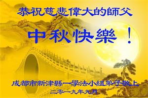 四川省成都市新津县一学法小组大法弟子恭祝慈悲伟大的师父中秋快乐!