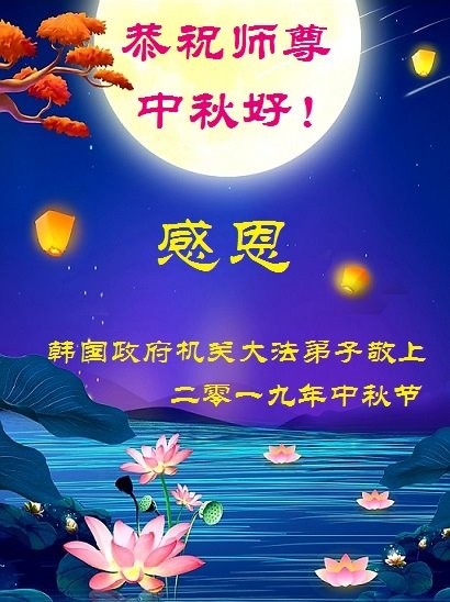 【明慧网二零一九年九月十二日】 驻韩国北朝鲜大法弟子恭祝师父中秋愉快!