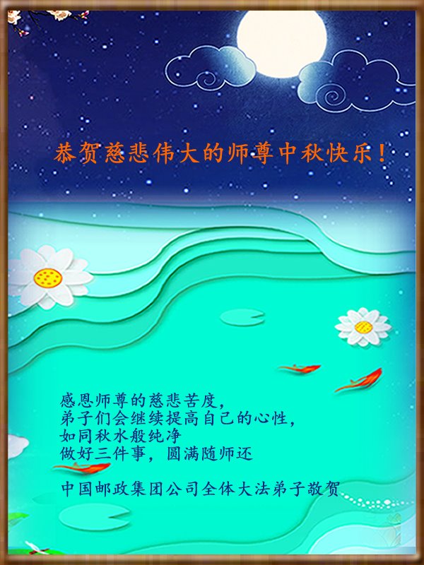 中国邮政集团公司全体大法弟子恭祝师尊中秋快乐!
