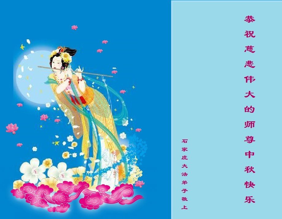 我们一定遵照师父所讲的,没做好的继续做好,做好三件事,多救人! 河北石家庄新华区一大法弟子恭祝慈悲伟大的师尊中秋节快乐!