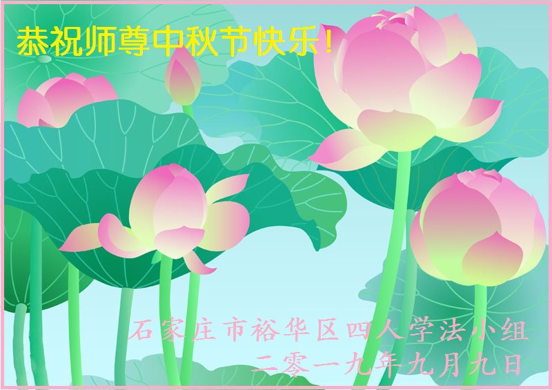 【明慧网二零一九年九月十二日】 河北省石家庄市新华区一学法小组全体大法弟子恭祝慈悲伟大的师父中秋节快乐!