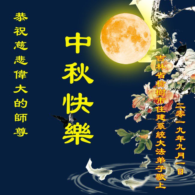 恭祝慈悲伟大的师尊中秋节快乐! 河北银行系统大法弟子敬贺 二零一九年九月一日 中国大陆税务系统大法弟子恭祝师尊中秋快乐!