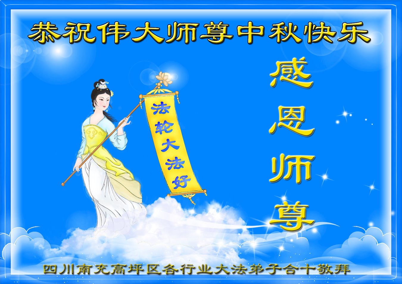 在中秋佳节来临之际,南充各行业全体大法弟子合十恭祝师尊中秋快乐!感恩师尊用巨大的承受延续给弟子的时间,让弟子在修好自己的同时救度更多的众生!弟子们会知道珍惜师尊延长来的时间,在任何魔难面前都会把众生的得救放在第一位,形成整体配合圆容好,不辜负师尊的慈悲苦度! 南充各行业全体大法弟子 合十 叩拜 四川南充高坪区各行业大法弟子恭祝无量慈悲伟大的师尊中秋快乐!