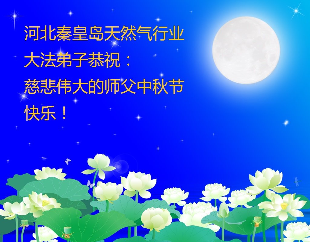 河北省秦皇岛市银行业向慈悲伟大师父恭祝师尊中秋节快乐!请师尊放心,弟子会不断精進,做好弟子该做的事。 北京卫生系统大法弟子恭祝师尊中秋节快乐!