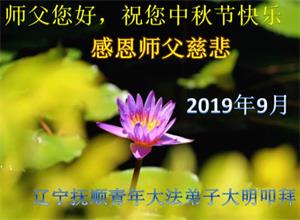 【明慧网二零一九年九月十二日】 辽宁省抚顺一大法弟子恭祝师尊中秋快乐!