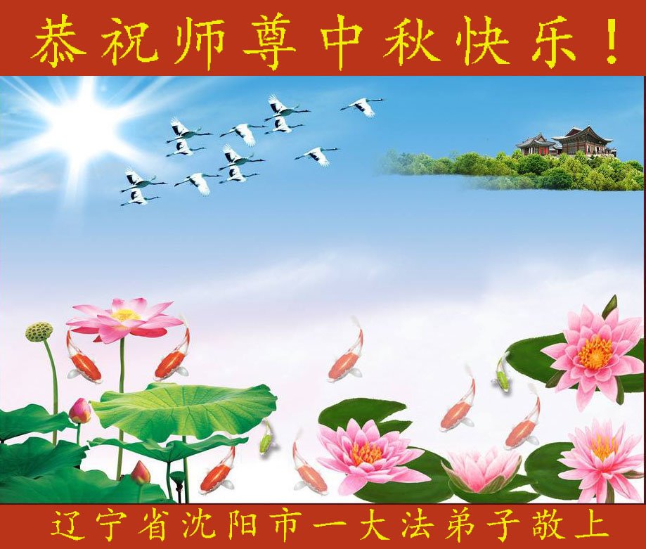 恭贺伟大慈悲的师尊中秋佳节快乐! 沈阳市两个老年学法小组的大法弟子叩拜 辽宁省沈阳市一大法弟子恭祝师尊中秋快乐!