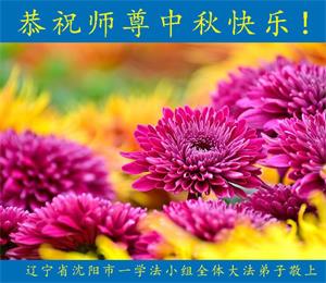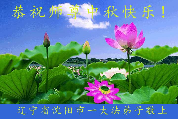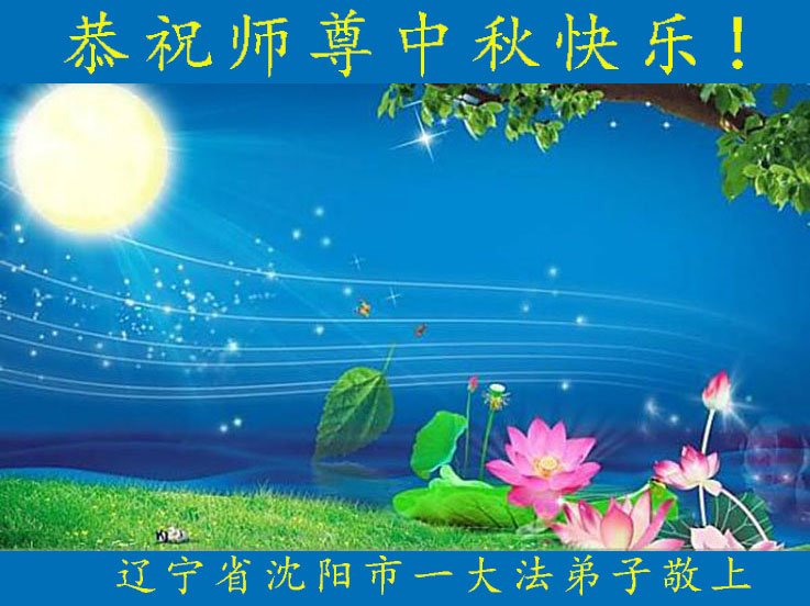 师尊您好!我们辽宁省沈阳市大东区一学法小组五位大法弟子叩拜师尊!恭祝师尊中秋快乐!师父您辛苦了!弟子想念您! 辽宁省沈阳市大东区一学法小组 2019年9月10日 辽宁省沈阳市一大法弟子恭祝师尊中秋快乐!