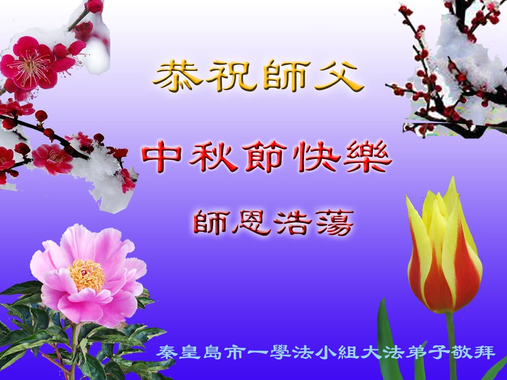 每逢佳节倍思亲,在这中秋佳节之际,我们更加想念慈悲伟大的师父。叩谢师父救度之恩,盼大法弟子与师父团聚的日子早日到来。在这正法的最后时期,我们只有谨遵师父的教诲,做好三件事,多学法,多炼功,多救人,兑现史前大愿,早日功成圆满,做合格的大法弟子。让师父多一些欣慰,少一份操劳,牵着我们的手一道回家。跪拜师父! 河北省秦皇岛大法弟子恭祝师尊中秋节快乐!
