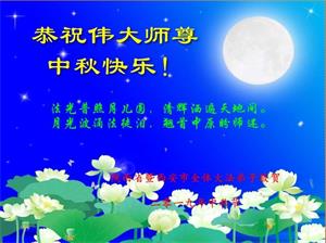 我们一定紧跟师尊,越到最后越精進,请师尊放心。 陕西省西安市南郊电子城大法弟子敬上 陕西西安市东郊大法弟子祝师尊中秋节快乐!