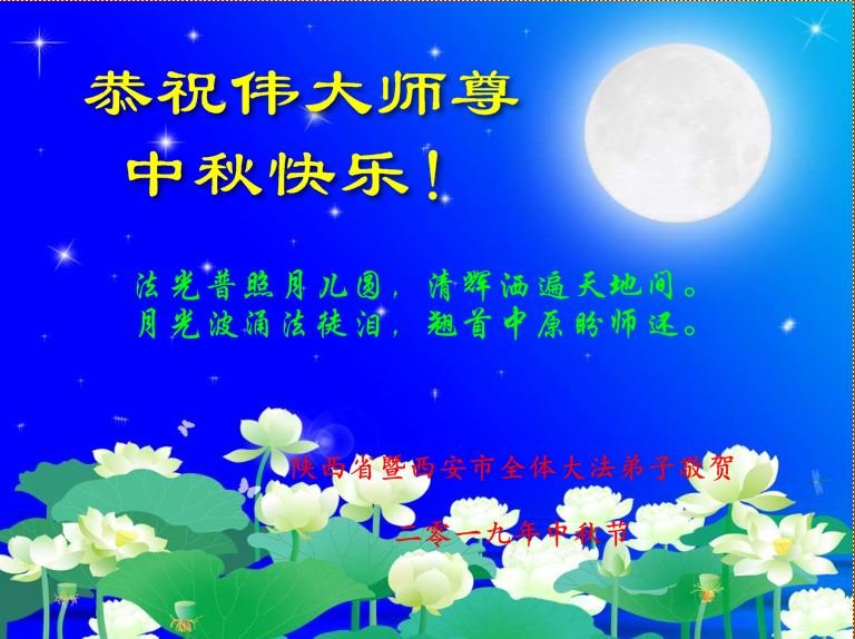 陕西西安东郊大法弟子恭祝师尊中秋快乐! 陕西省西安市南郊大法弟子遥祝师尊中秋节愉快!