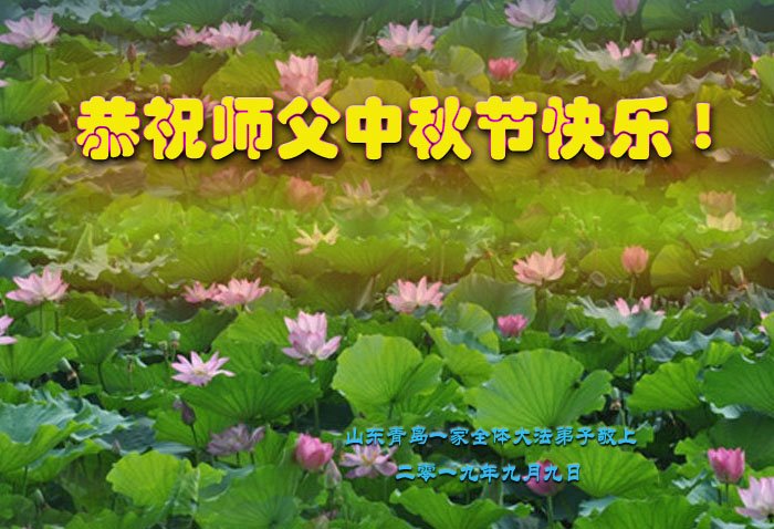 【明慧网二零一九年九月十二日】 山东青岛一家全体大法弟子恭祝师父中秋节快乐!