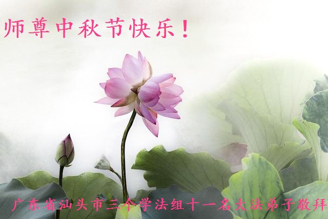广东汕头母女三人及同修父母和莲下大法弟子恭祝师尊中秋节快乐!