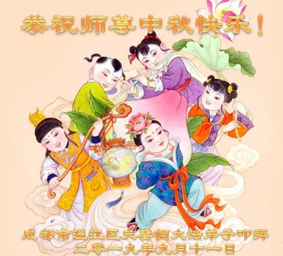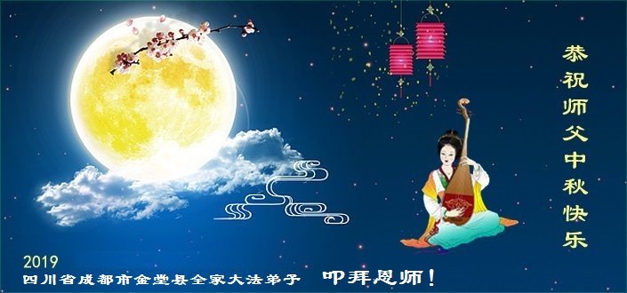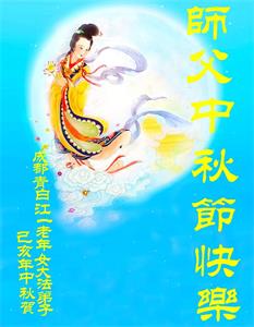 四川省成都一明真相受益的大法弟子家人恭祝大法师父中秋节快乐!