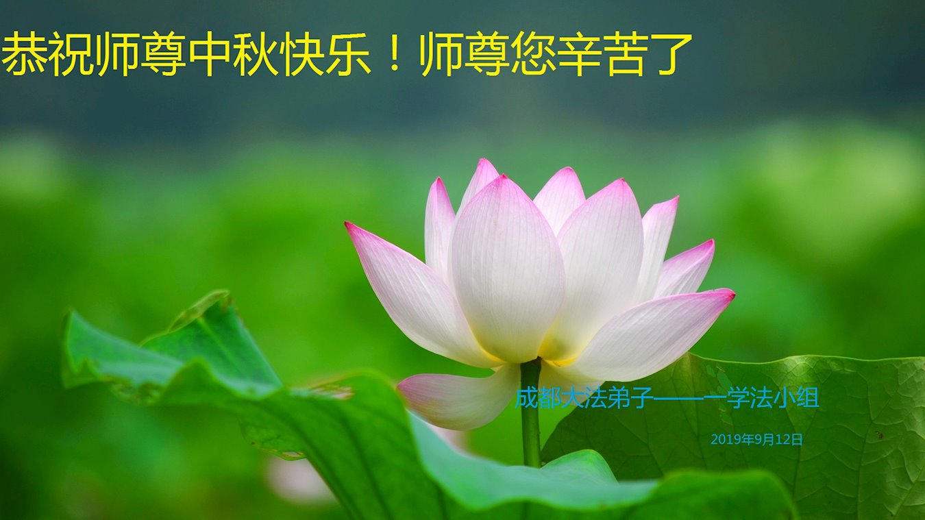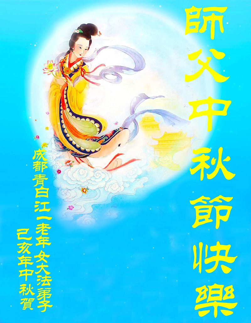 【明慧网二零一九年九月十三日】 四川省成都青白江一老年女大法弟子恭祝师父中秋节快乐!