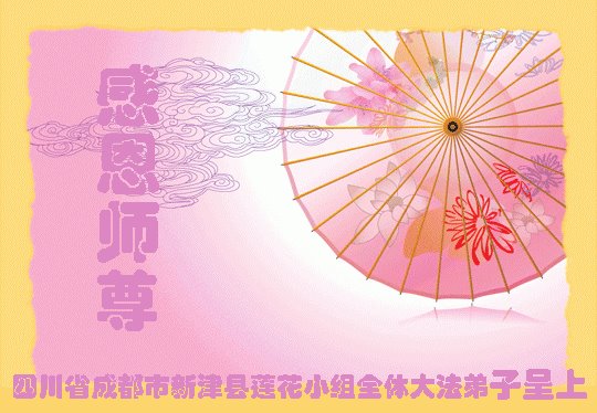 师父您好!师父您辛苦了!我们全体小组的大法弟子叩谢师尊救度。 四川省成都市新津县莲花小组的全体大法弟子恭祝师尊中秋节快乐!