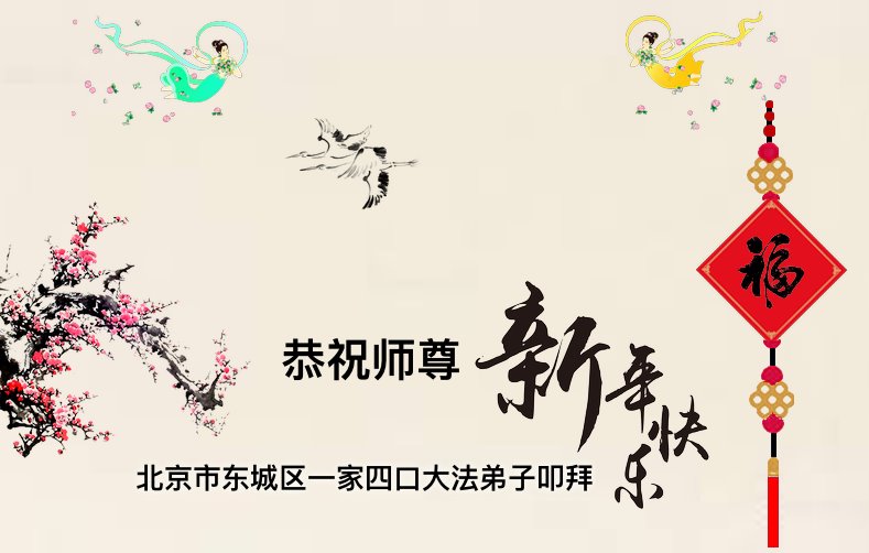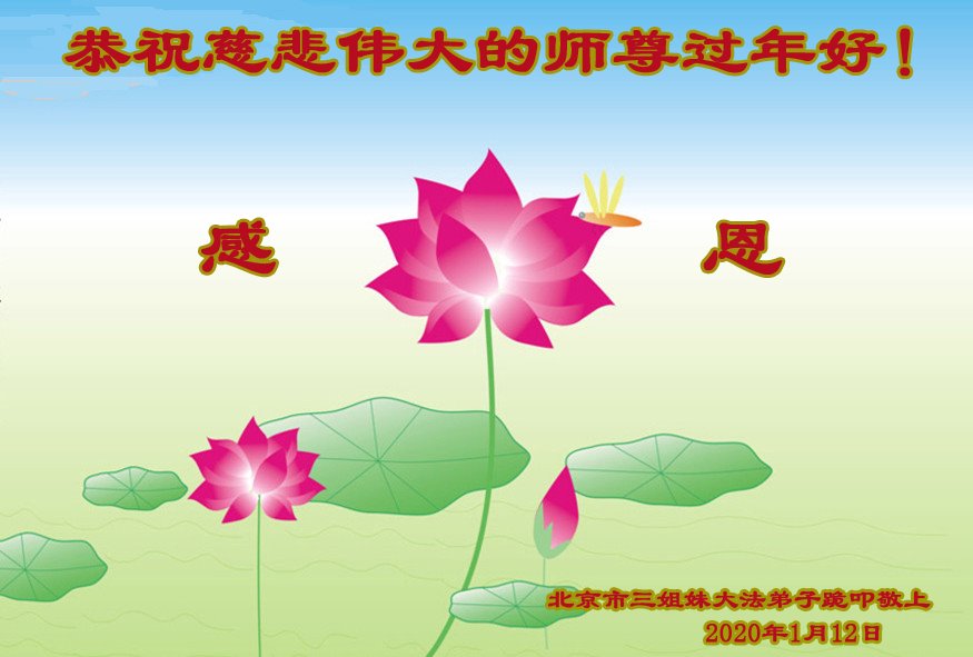 恭祝慈悲伟大的师尊新年好! 北京朝阳区一家大法弟子叩拜 2020年1月14日 北京市三姐妹大法弟子恭祝慈悲伟大的师尊过年好!