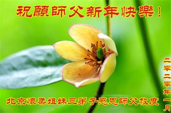 北京昌平一对老年大法弟子恭祝师尊新年快乐!法轮大法好,真善忍好!叩谢师尊救度之恩。 北京市怀柔区三姐妹大法弟子祝愿师尊新年快乐!