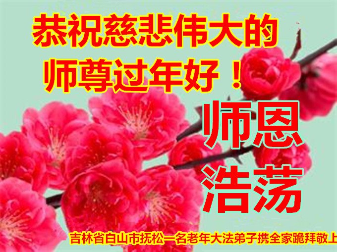 吉林省大法弟子及家人恭祝慈悲伟大的师尊过年好!叩谢师尊的慈悲苦度。师尊,您辛苦了! 吉林省通化市大法弟子恭祝师尊新年快乐!