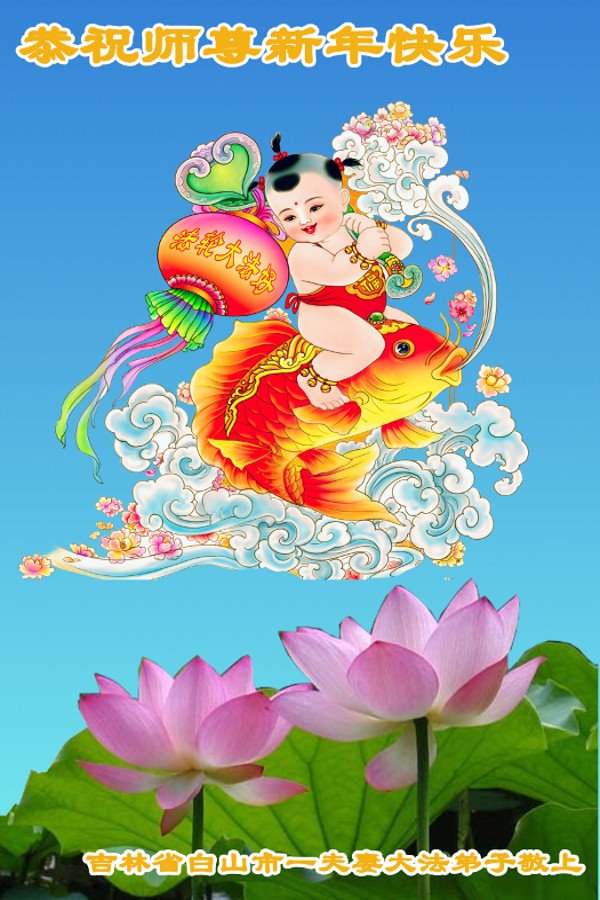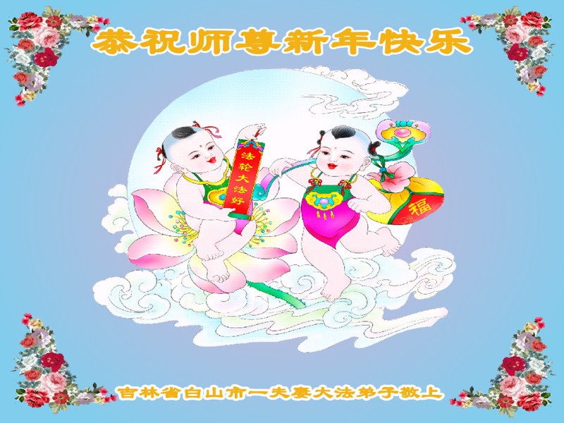 新年到来之际,给慈悲伟大的师尊拜年了!师父过年好!弟子叩谢师恩!感谢师父慈悲救度!在新的一年里,弟子要努力学法,做好三件事,归正自己,救度众生。 吉林省白山市一夫妻大法弟子恭祝师尊新年快乐!