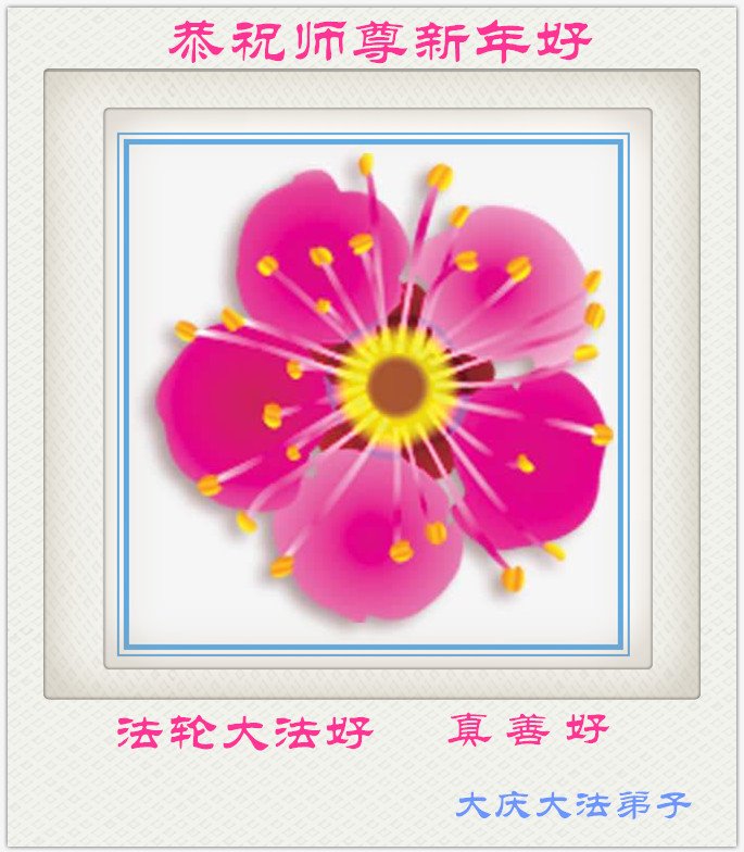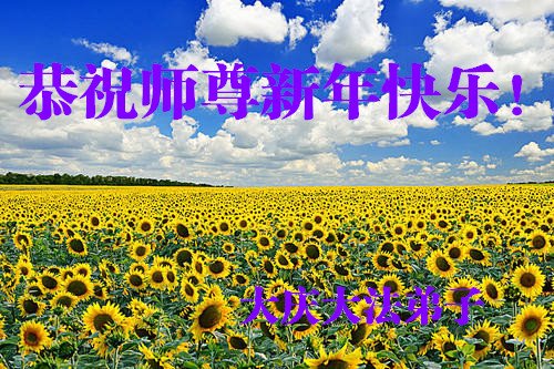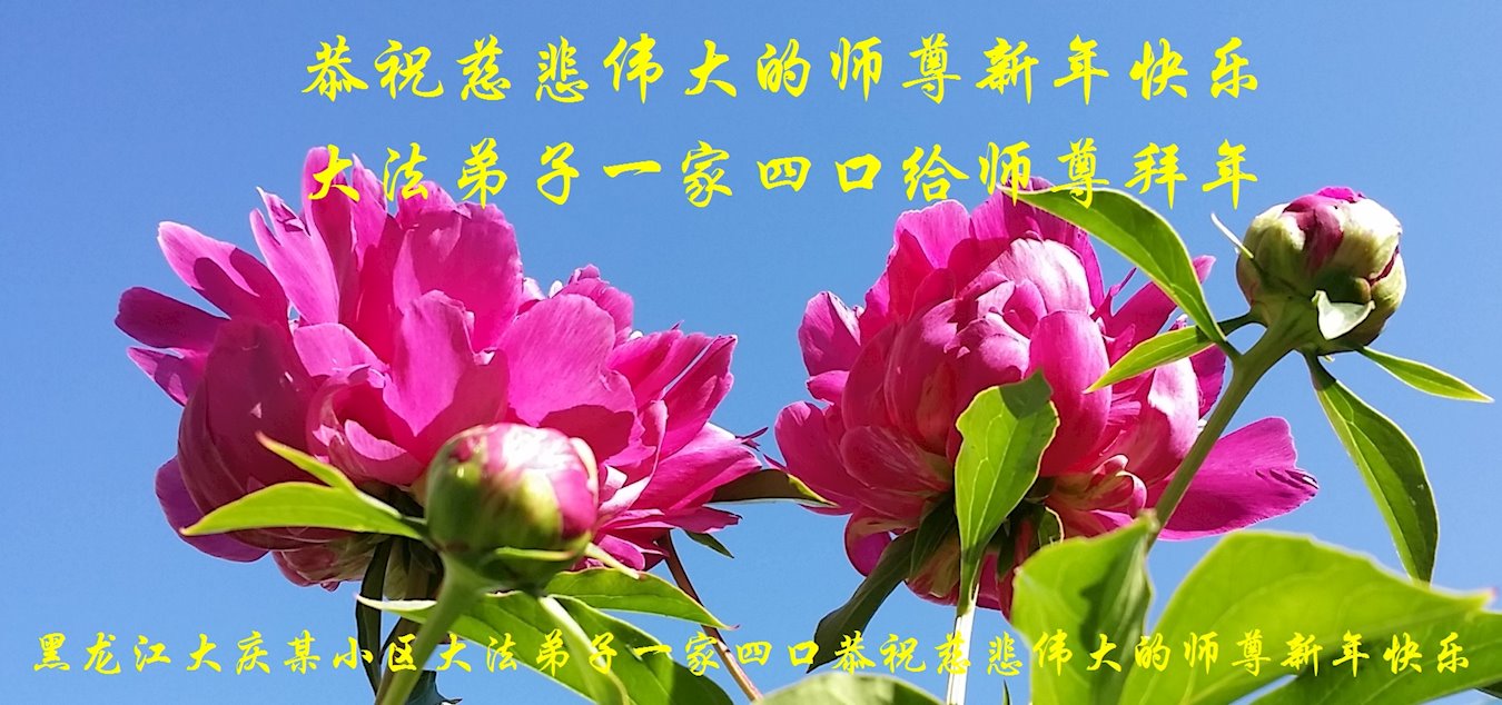 弟子及家人敬谢师恩!在新的一年里弟子更精進,抓住宝贵的时间要静心学法、静心背法,用法来要求自己。讲真相救众生,不负众生所望,完成自己的神圣使命,随师返家院。叩拜师父! 中国大陆黑龙江省大庆市让胡路区一大法弟子恭祝慈悲伟大的师尊新年快乐!