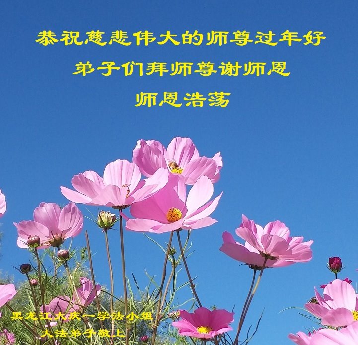 恭祝慈悲伟大的师尊新年快乐! 一学法小组大法弟子给师尊拜年! 黑龙江省大庆大法弟子祝师尊过年好!