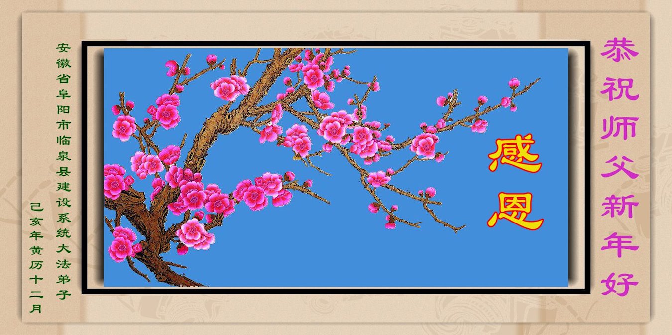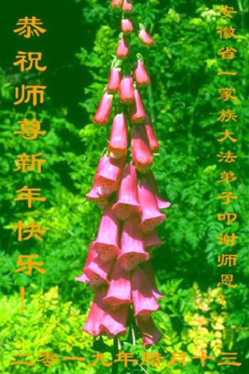 在中国新年即将到来之际,合肥市大法弟子恭祝慈悲伟大的师父过年好!我们要在救度众生中修好自己,真正的神起来,以新宇宙正神的状态走正最后神的路,不给自己和自己的众生下遗憾,不辜负师父的慈悲苦度。 安徽亳州一大法弟子恭祝师尊新年好!