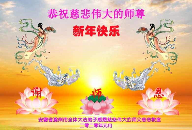 【明慧网二零二零年一月二十一日】 安徽省滁州市全体大法弟子恭祝慈悲伟大的师尊新年快乐!