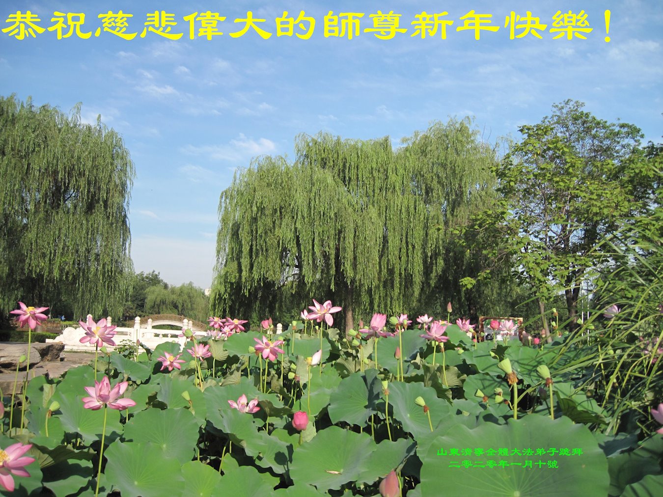 恭祝师尊新年好!谢谢师父的慈悲救度! 山东一大法弟子敬上 山东省全体大法弟子恭祝慈悲伟大的师尊新年快乐!