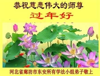 我们一家跟着师父正法進程走,做好三件事,同时修好自己,请师尊放心。 河北廊坊安次区全体大法弟子恭祝师尊新年快乐!