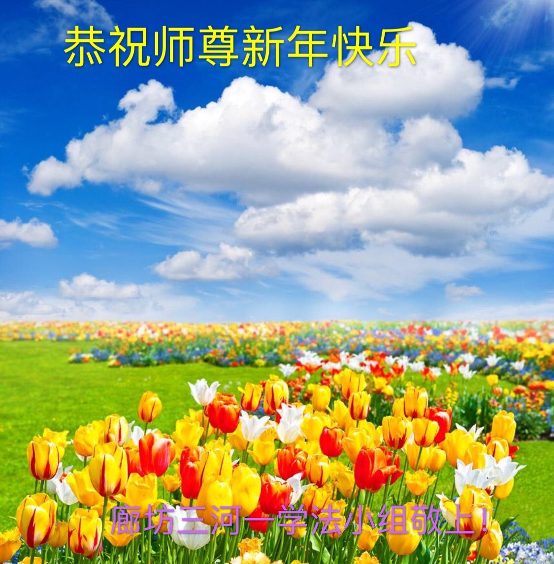 河北省廊坊市燕郊一学法小组大法弟子跪拜恭祝慈悲伟大的师尊新年快乐!