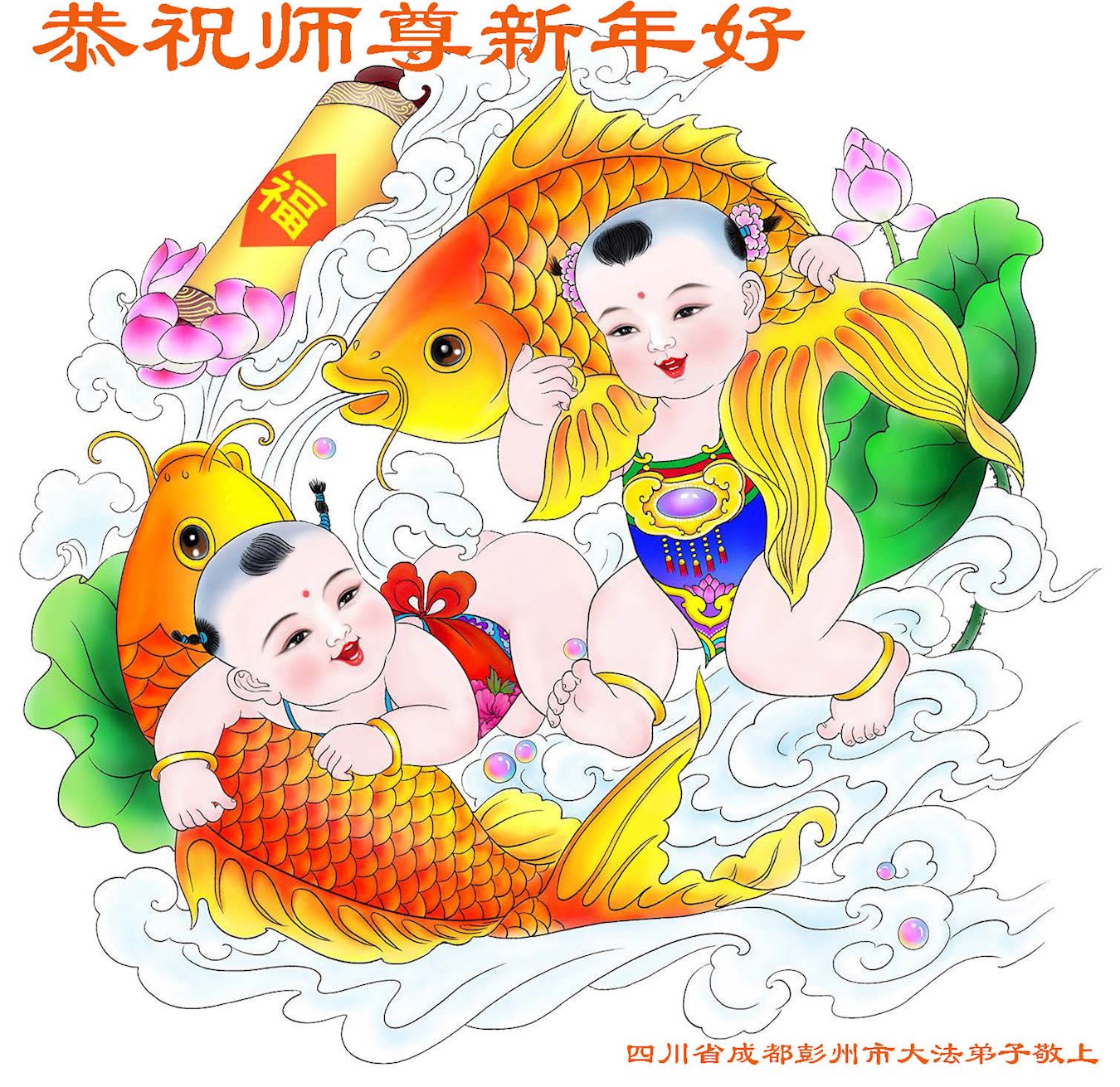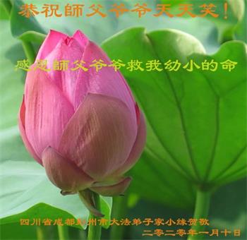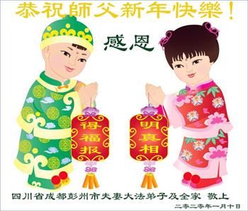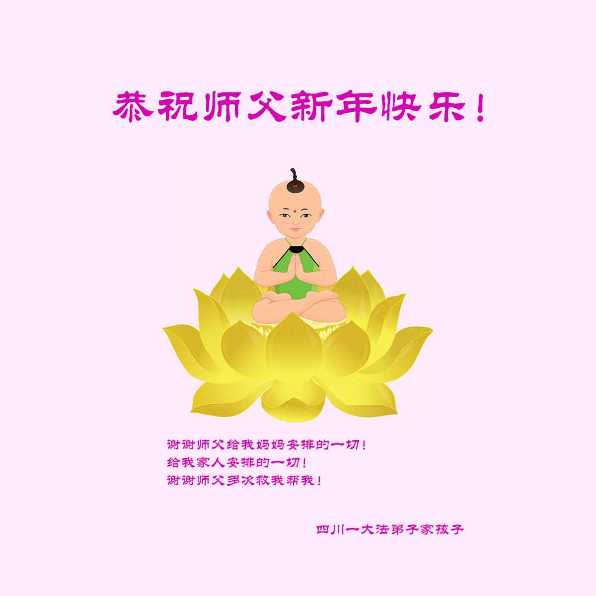 四川成都一大法弟子家孩子祝师父新年快乐!