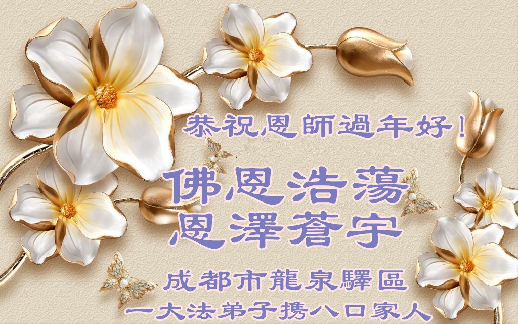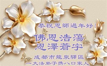 四川成都一大法弟子及全家亲人恭祝师尊新年快乐!
